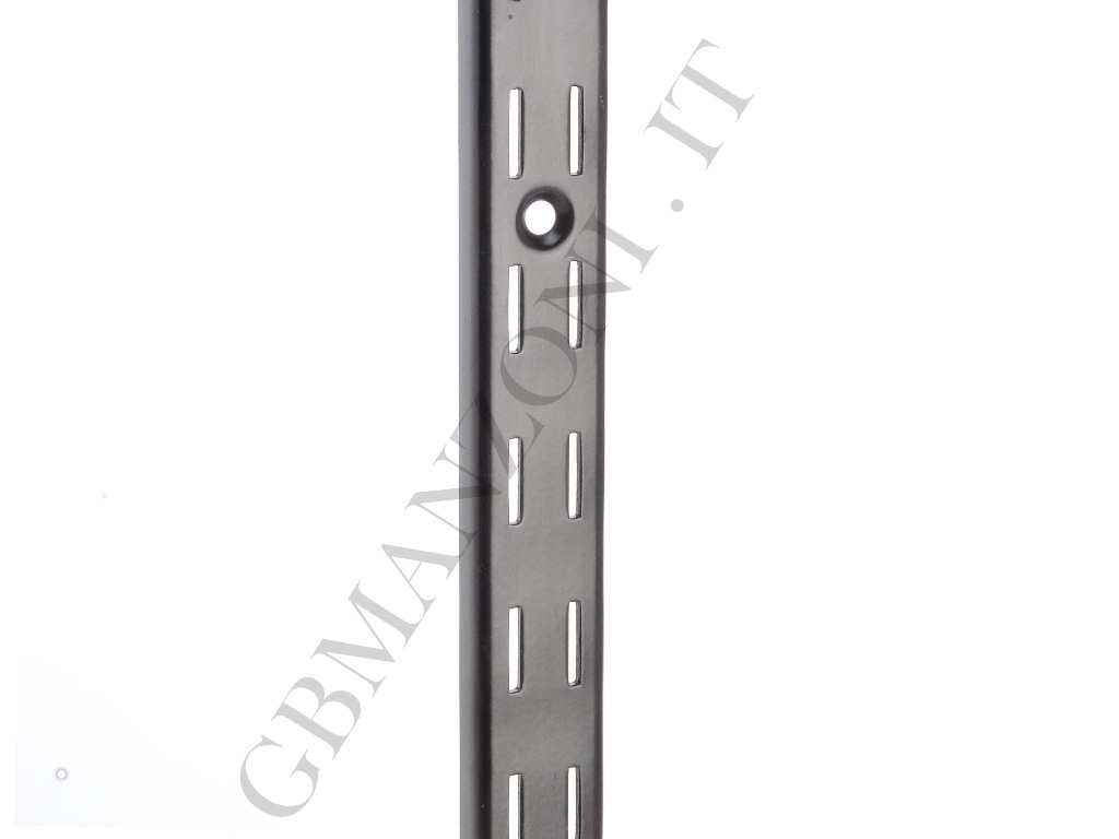 Le cremagliere a due file di cave sono dei profilati che consentono di abbinare resistenza ed eleganza. La doppia fila di cave permette infatti un'ancoraggio forte e stabile delle reggi mensole ( Art. 901 ) .