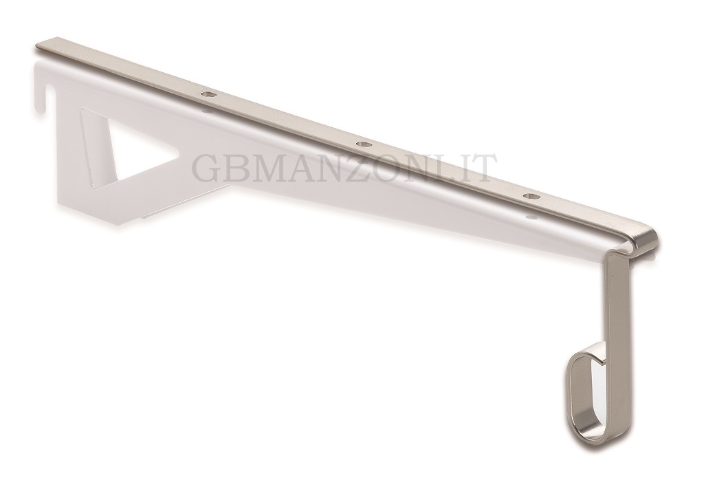 Rod support which fits perfectly between bracket (Art. 628) and shelf. Used to build wall-in closets or show units.
