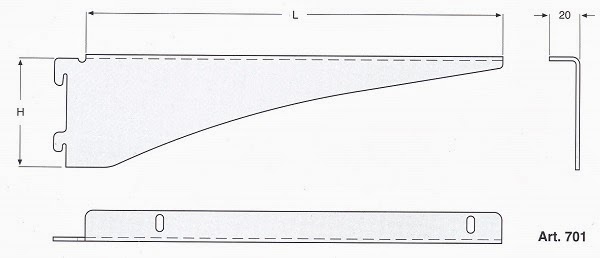Le reggimensole ad "L" sinistre destre sono una coppia di mensole simmetriche che si montano sulle cremagliere a sezione tonda ( Art. 700 ). Portata da 40 Kg cadauna .